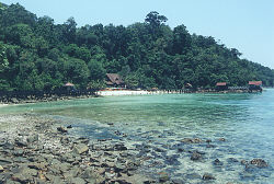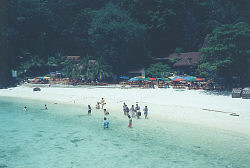 As everyone got changed into their beachwear, colorful patterns begin to appear on the beach. The people on the tour were a real mix. The Chinese were dressed in colorful flower patterns and Hawaiian shirts, the Muslums in simpler colors that blend into the forest background. Some Muslum women stayed in their black frocks all afternoon, content to watch from the beach. There were also a few British, Germans, Indians and Australians.
