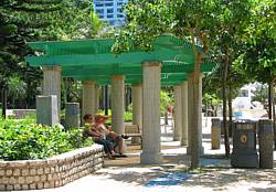 I hung out in the cage for about an hour then headed east and up the hill to the SARS memorial, which commemorates the doctors who worked on the SARS epidemic a few years ago. The highlight here is the SARS tower with a double helix stairway going up about a hundred feet to the observation platform where you get one of the great views of the forested park and downtown Hong Kong. South of here (up the hill) are the residential highrises, to the north (toward the harbor) are the downtown skyscrapers.