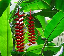 This big bird cage is about the size of a football field and covered with a big dome of chicken wire. The cedar pathway inside is about 15 feet off the ground which puts us at eye level with the birds in the trees. But given the size of this place, there's really not that many birds here. You'd think the place would be choked with them but we're only seeing maybe a dozen or two. I imagine there are a lot more hidden where we can't see them, but either way it's immensely interesting with lorikeets, minahs and colorful pigeons.