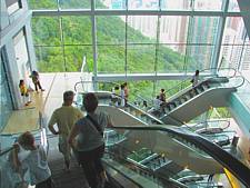 After crossing on the Star Ferry, we hiked across town to the Peak Trak. A hike through downtown Hong Kong is fascinating, with huge buildings and beautiful parks around every turn.