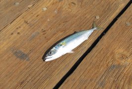 A freshly caught Makerel on the pier. There was also a shark tied to a rope under the pier. |