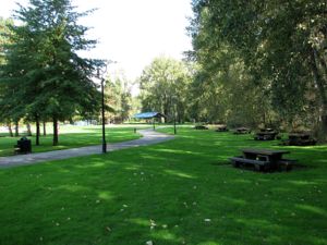 The west end is Marine Park which has a big grassy picnic area and pavilion. It's a short walk to the river where there is a boat ramp and small beach.